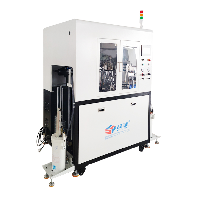 法蘭雙頭轉盤自動點膠機由品速科技獨家設計生產,主要用于各類型法蘭點膠,實現上料,點膠,下料功能一體化設計,雙頭點膠,速度快,點膠均勻。