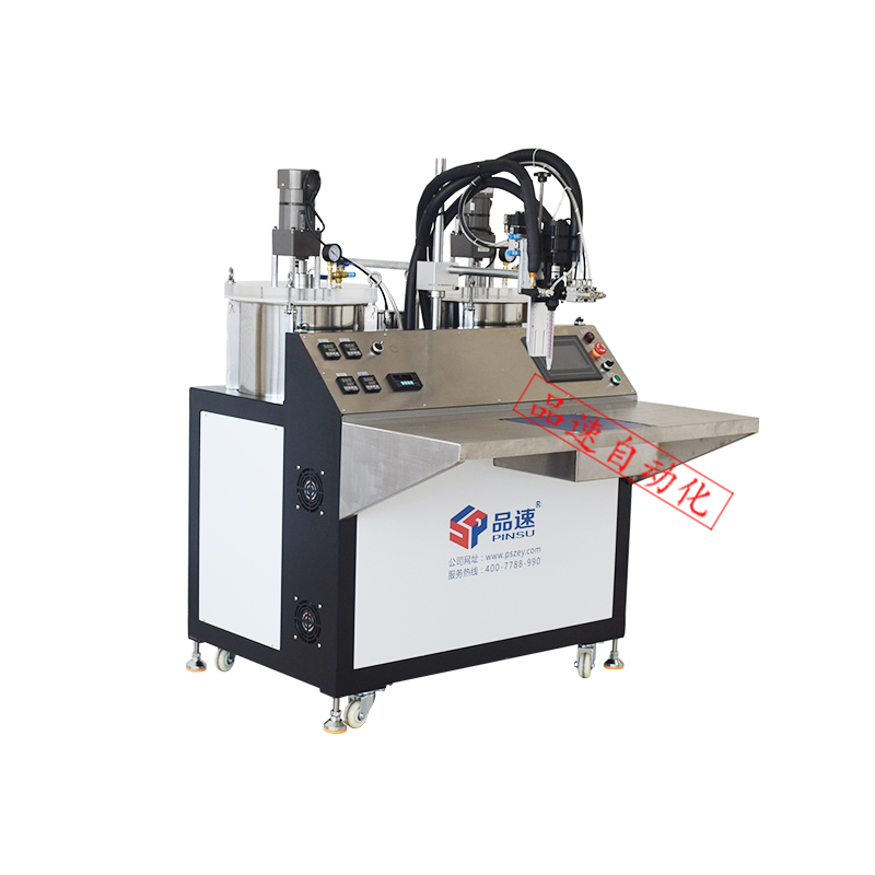 AB膠自動配比稱膠灌膠機是一種專門用于AB膠自動配比、自動混合、定量出膠和自動稱膠的自動化設備。它通常使用的膠水包括環氧樹脂ab膠、聚氨酯PU膠和硅膠等,而且適用比例可以在1:1到10:1之間進行固定比例調整。根據AB膠水的特性、粘度和出膠量等因素,AB膠自動配比稱膠灌膠機可以進行非標定制;例如,如果AB膠水中有氣泡,我們可以加裝真空泵對料桶中膠水進行抽真空消泡;如果AB膠水中有填料,我們可以加裝攪拌裝置對料桶中膠水進行攪拌防止膠水沉淀分層;如果膠水粘度大不易流動,我們可以加裝加熱裝置對料桶中膠水進行加熱,使其流動。