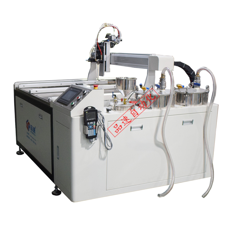 深圳市品速科技有限公司生產落地式真空灌膠機已加裝抽真空裝置,可以有效對膠桶中AB膠水進行抽真空消除氣泡,保證了灌膠的品質。真空灌膠機
