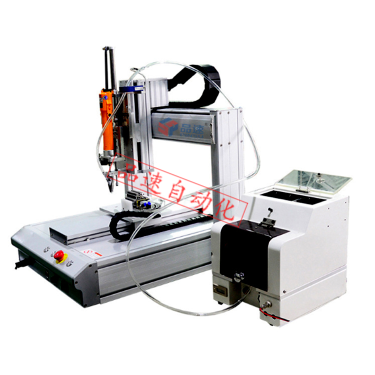 適用品速生產(chǎn)的三軸吹氣式自動鎖螺絲機?可大大提高生產(chǎn)效率,節(jié)省人力。每打完一顆螺絲,在提起電批的同時,另一顆螺絲就送到了批頭下,可以連續(xù)操作,尤其適用于同一規(guī)格、多工位的工件。
