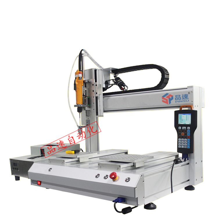 品速科技專業(yè)生產(chǎn)的四軸吹氣式自動鎖螺絲機(jī),雙工作平臺實現(xiàn)一邊鎖螺絲,一邊擺放產(chǎn)品;可以用于十字,一字,梅花,內(nèi)六角等螺絲鎖附,速度快,鎖螺絲品質(zhì)高。